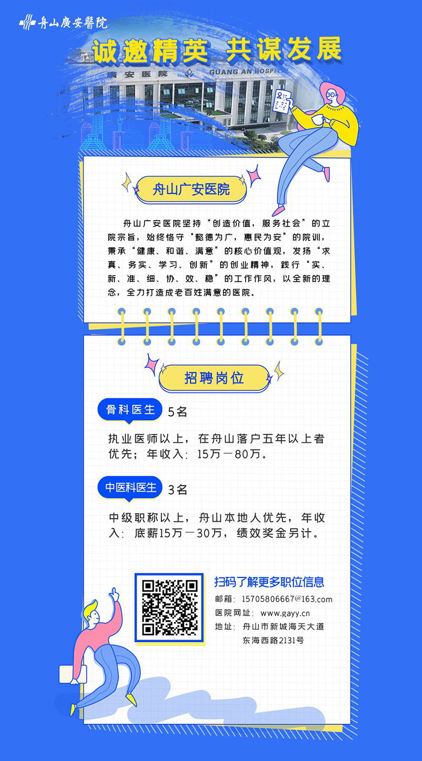1.應(yīng)聘者認同醫(yī)院理念,身體健康,能刻苦耐勞,有一定的專業(yè)技術(shù)能力和相關(guān)工作管理能力,有良好的職業(yè)道德和高度的責(zé)任心,臨床及醫(yī)技科室應(yīng)聘年齡在60歲以下,行政職能科室應(yīng)聘年齡在50歲以下(有醫(yī)院相關(guān)經(jīng)歷者優(yōu)先)。
