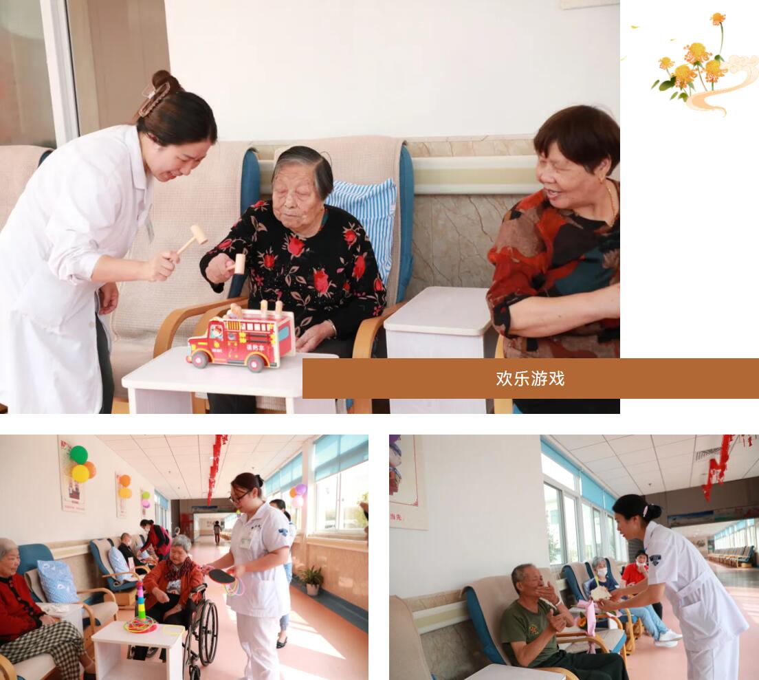 重陽(yáng)節(jié)這天,頤養(yǎng)院里熱鬧非凡。醫(yī)護(hù)人員們精心準(zhǔn)備了猜字謎、小游戲、競(jìng)賽有獎(jiǎng)等各類節(jié)目。老人們的積極性被充分調(diào)動(dòng)起來(lái),他們仿佛回到了年輕的時(shí)候,充滿了活力和熱情。在游戲中,我們與老人們拉近了距離,歡聲笑語(yǔ)不斷。