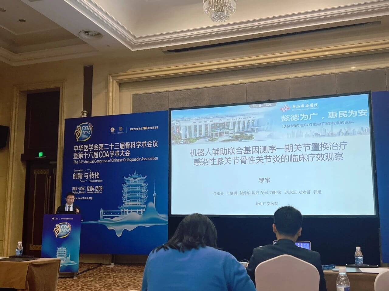 我院羅軍副院長(zhǎng)在大會(huì)上做了“機(jī)器人輔助聯(lián)合基因測(cè)序一期關(guān)節(jié)置換治療感染性膝關(guān)節(jié)骨性關(guān)節(jié)炎的臨床療效觀察”的學(xué)術(shù)報(bào)告。機(jī)器人和基因測(cè)序均為國(guó)內(nèi)前沿的醫(yī)療技術(shù),精準(zhǔn)化、個(gè)體化、微創(chuàng)化的手術(shù)方案讓患者快速康復(fù),得到了專(zhuān)家們的一致好評(píng)。