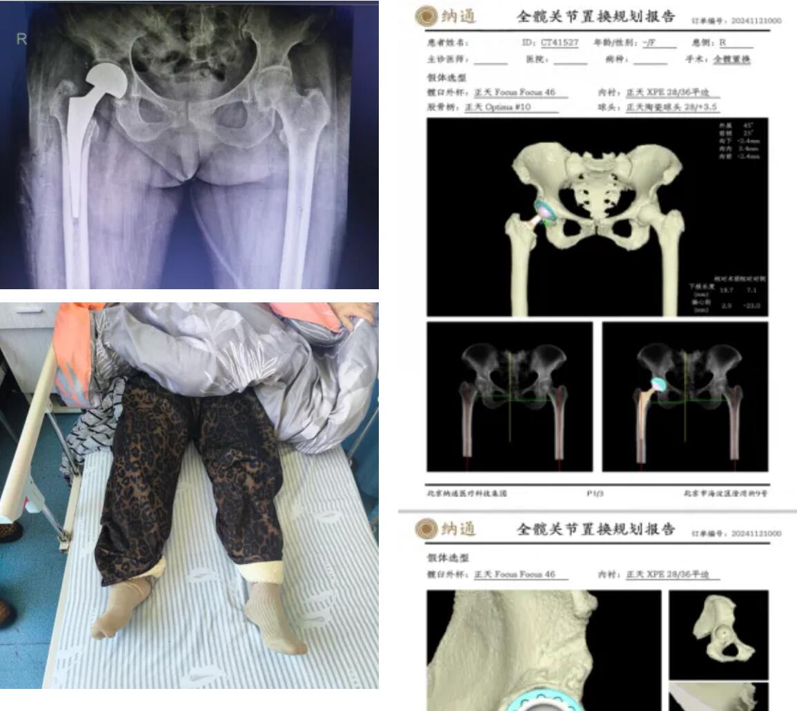 阿婆住院后,羅院長(zhǎng)立馬聯(lián)系內(nèi)科和麻醉科專(zhuān)家來(lái)會(huì)診,積極調(diào)整阿婆各項(xiàng)不理想指標(biāo),盡量將手術(shù)風(fēng)險(xiǎn)降到最低。羅院長(zhǎng)還針對(duì)阿婆病情特殊情況進(jìn)行一對(duì)一的計(jì)算機(jī)三維精準(zhǔn)規(guī)劃,精心打造出詳細(xì)的手術(shù)方案,經(jīng)過(guò)羅院長(zhǎng)手術(shù)團(tuán)隊(duì)的努力,阿婆成功完成了機(jī)器人輔助下右側(cè)人工雙動(dòng)股骨頭置換術(shù)。