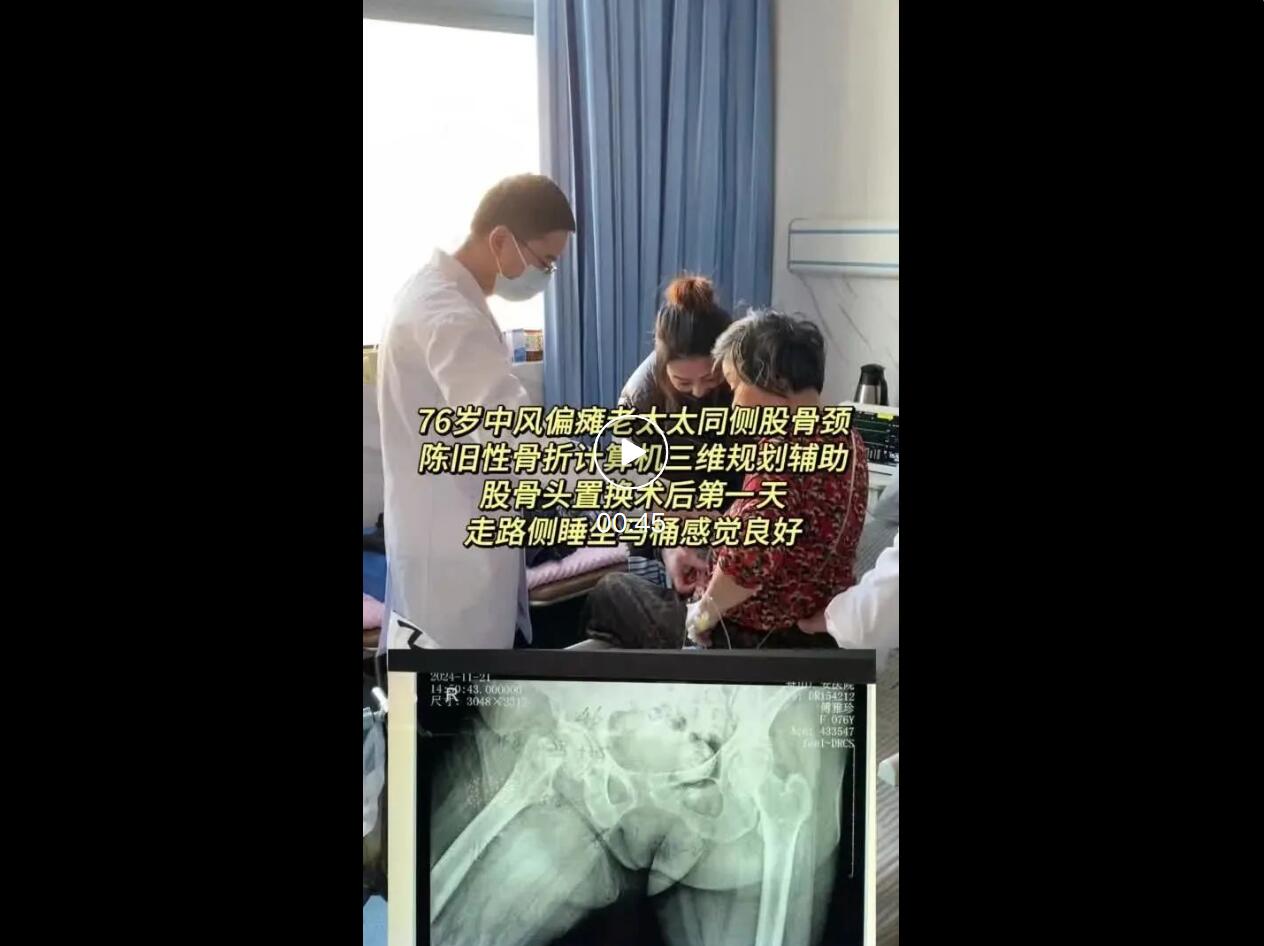 但不幸再次降臨,阿婆在家起床時(shí)不慎摔倒,右髖部疼痛難忍,經(jīng)過(guò)醫(yī)院檢查后確認(rèn),傅阿婆為右側(cè)股骨頸骨折。