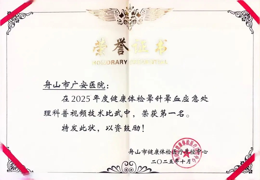 作為承擔海船船員體檢、職業(yè)健康體檢等多項任務(wù)的專業(yè)機構(gòu),舟山廣安醫(yī)院健康管理中心深知暈針暈血應(yīng)急處置對保障體檢安全的重要性。中心依托一站式服務(wù)空間及先進醫(yī)療設(shè)備,由資深專業(yè)技術(shù)人員組建應(yīng)急處置小組,日常通過定期培訓(xùn)、情景演練等方式強化團隊能力,將“迅速反應(yīng)、精準處置、人文關(guān)懷”的原則融入每一次服務(wù)中。此次比武獲獎,正是對中心應(yīng)急處置規(guī)范化、專業(yè)化水平的充分認可。