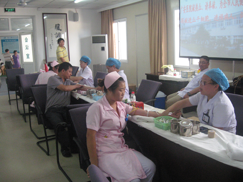 血站血情告急,A型血和O型血僅有50個單位,舟山廣安骨傷醫(yī)院一聽說這個情況,立即與市中心血站取得聯(lián)系,主動要求獻血。2012年7月30日下午兩點,組織醫(yī)院工作人員在醫(yī)院會議室進行獻血。參加此次獻血活動的共有42名醫(yī)務人員,到下午四點半,42名醫(yī)務人員共獻血10700毫升,其中16人獻血300毫升以上。另有8名醫(yī)院人員成為了捐獻造血干細胞志愿者。