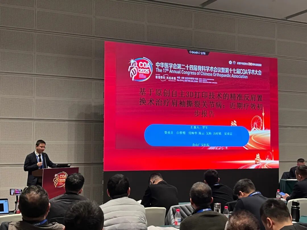舟山廣安醫(yī)院羅軍副院長受邀參加此次盛會,并在大會上作專題發(fā)言。羅軍副院長展示的骨科3D打印技術(shù)臨床應(yīng)用成果,引起了與會專家的廣泛關(guān)注和熱烈討論。其創(chuàng)新的技術(shù)路線和扎實的臨床數(shù)據(jù),獲得了海內(nèi)外專家的高度評價,展現(xiàn)了我院在骨科技術(shù)創(chuàng)新方面的實力。