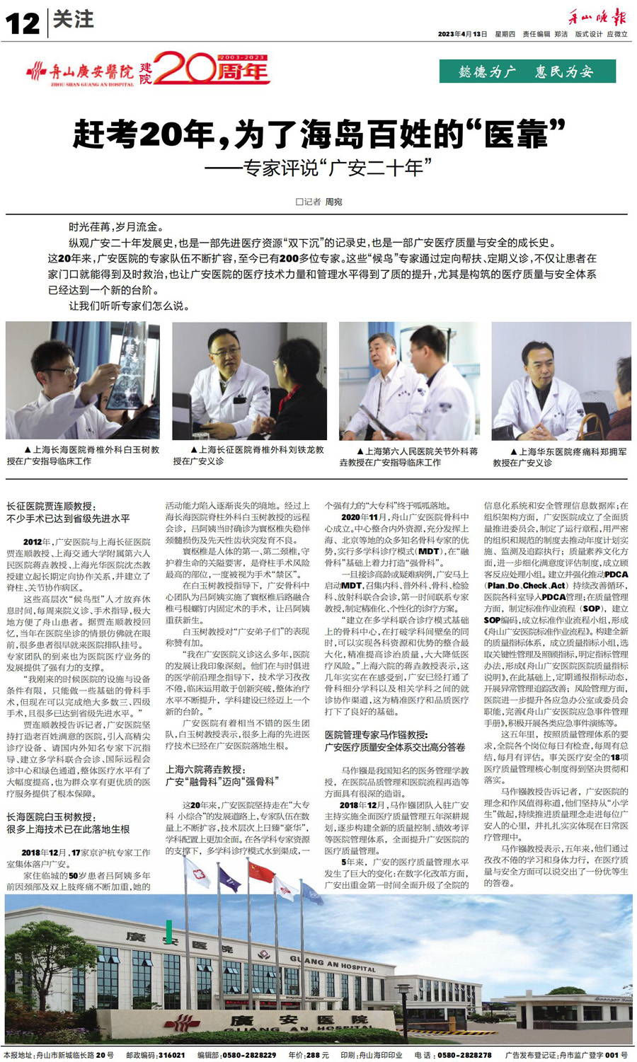 廣安人懷揣著對于醫(yī)療的敬畏和對舟山人的大愛,將以更加昂揚(yáng)的姿態(tài)和海納百川的胸懷,不斷把學(xué)科建設(shè)和醫(yī)療技術(shù)水平推向更高的境界,服務(wù)舟山、造福社會(huì)。